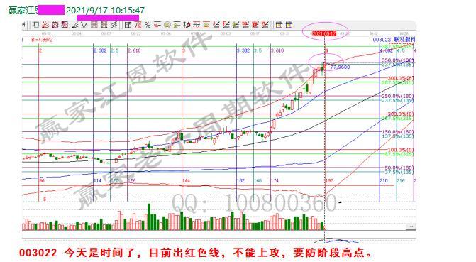9月17日是聯泓新科的時間窗口,股價上行至紅色線外+價格循環阻力點,時價四方,轉勢向下。