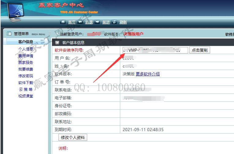 3.如下圖所示,在此位置復制“軟件安裝序列號”